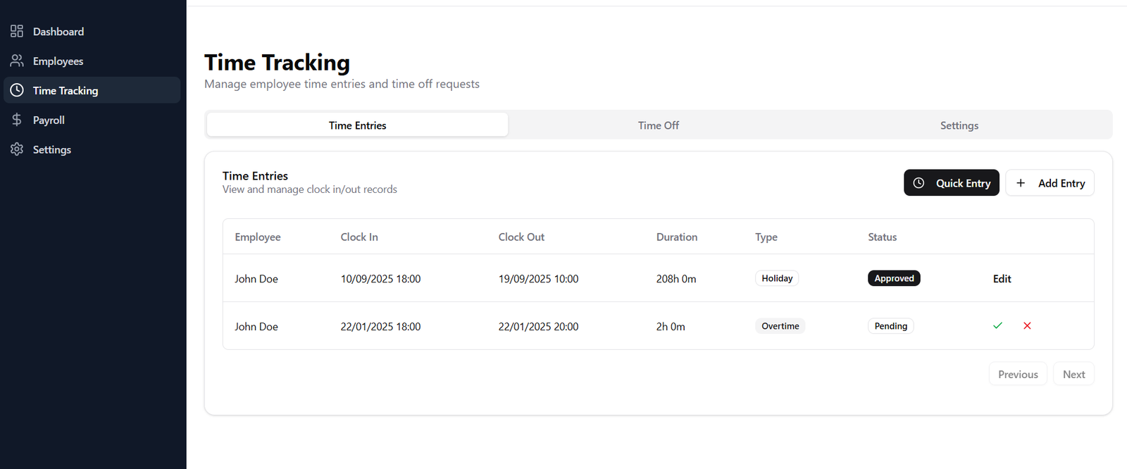 MiniHRO helps you track time, approve leave, and generate payslips — all from one simple dashboard.